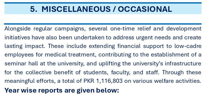 OCCASIONAL WELFARE ACTIVITIES (click for details)